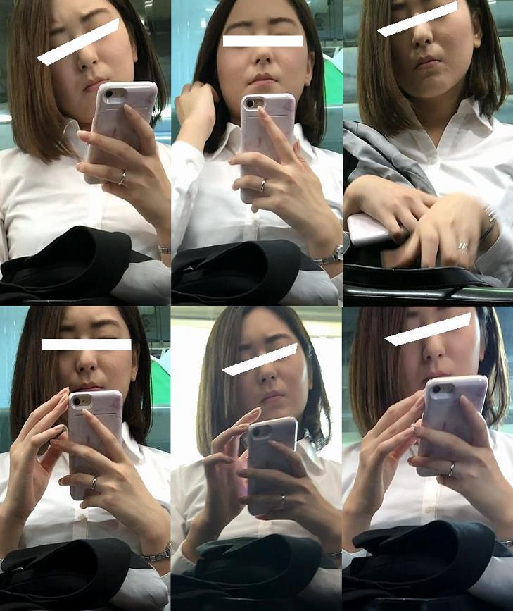 平日のとある午後…電車に乗り込んでいくと…目の前にスマホに夢中になっていらっしゃる…セミロングの人妻OLさんが目に入ってきました…。お鞄をお膝の上に行儀よくのせていらっしゃいますが…ミニタイトスカートでパンストあんよむき出し…▼ぞーんもむき出し…美味しそう…。なかなかアグレッシブに攻める人妻OLさん…良いですね…しばらく上から観察してみましたが…時おりみせる髪をかき上げたりする仕草が…悩ましい…。せっかくミニタイトで攻めていらっっしゃるのであれば…「私の▼ぞーん見て…」と言わんばかりに▼ぞーんをむき出しにしていらっしゃるのであれば…そのお心遣いを無駄にするわけにはいきませんね…っということで…人妻さんのむき出し▼ぞーんの目の前に定点カメを設置して…その無防備なお姿を…超至近距離でじっくり観察させて頂きました!!