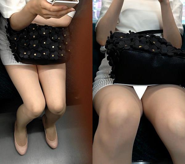 2. (電車対面)(顔出し)純白のブラウスと…黒のミニタイトスカート…ベーシックなスーツ姿が悩ましい人妻OLさんを観察してみました!!