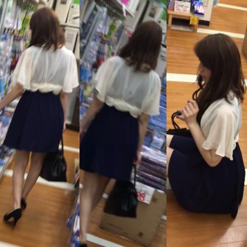 【ドラッグストアで盗撮】動画エロ紺色ワンピがたまらん人妻のエロパンティ